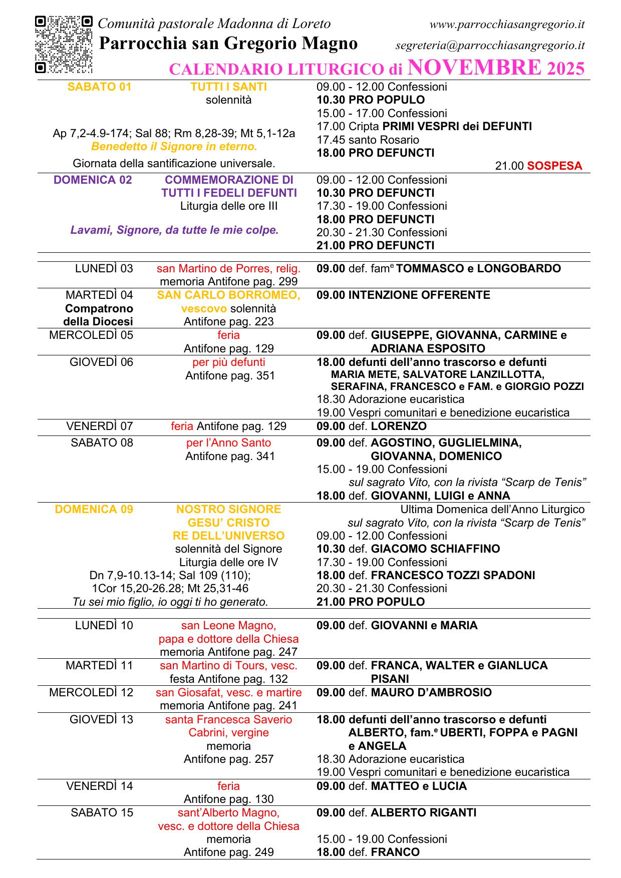 Calendario liturgico NOVEMBRE 2025